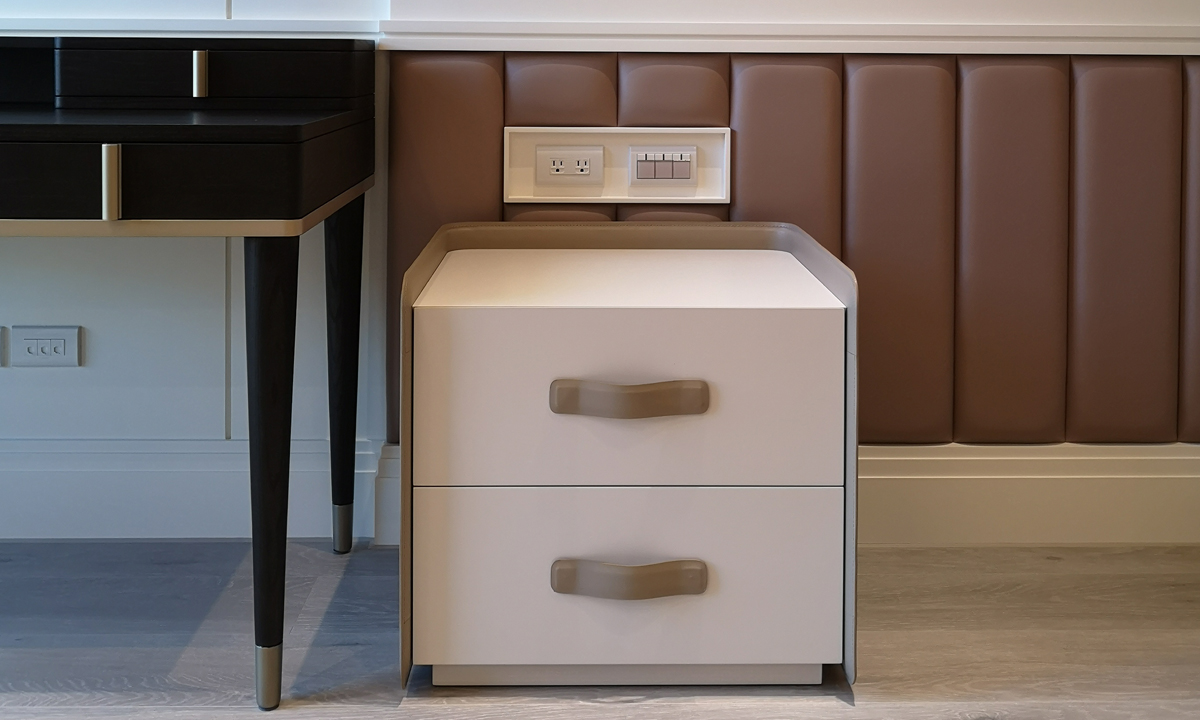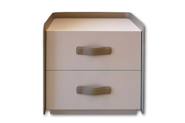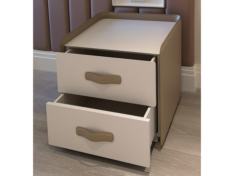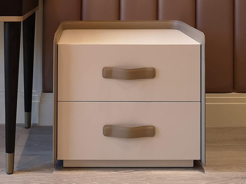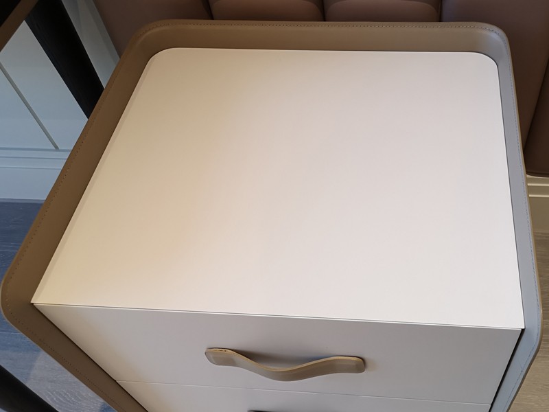 材質:櫃體米白色烤漆、框+把手包覆人造皮革