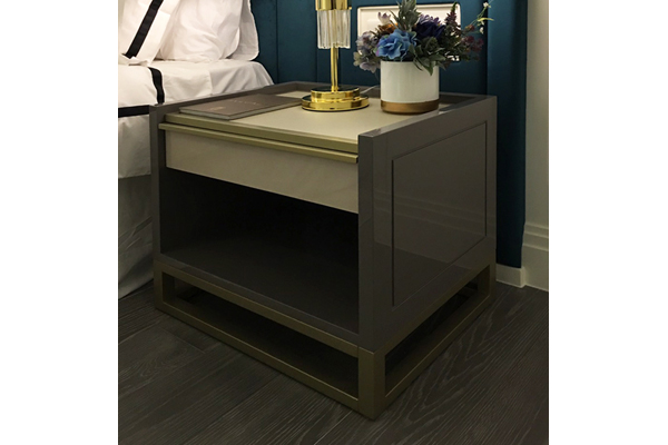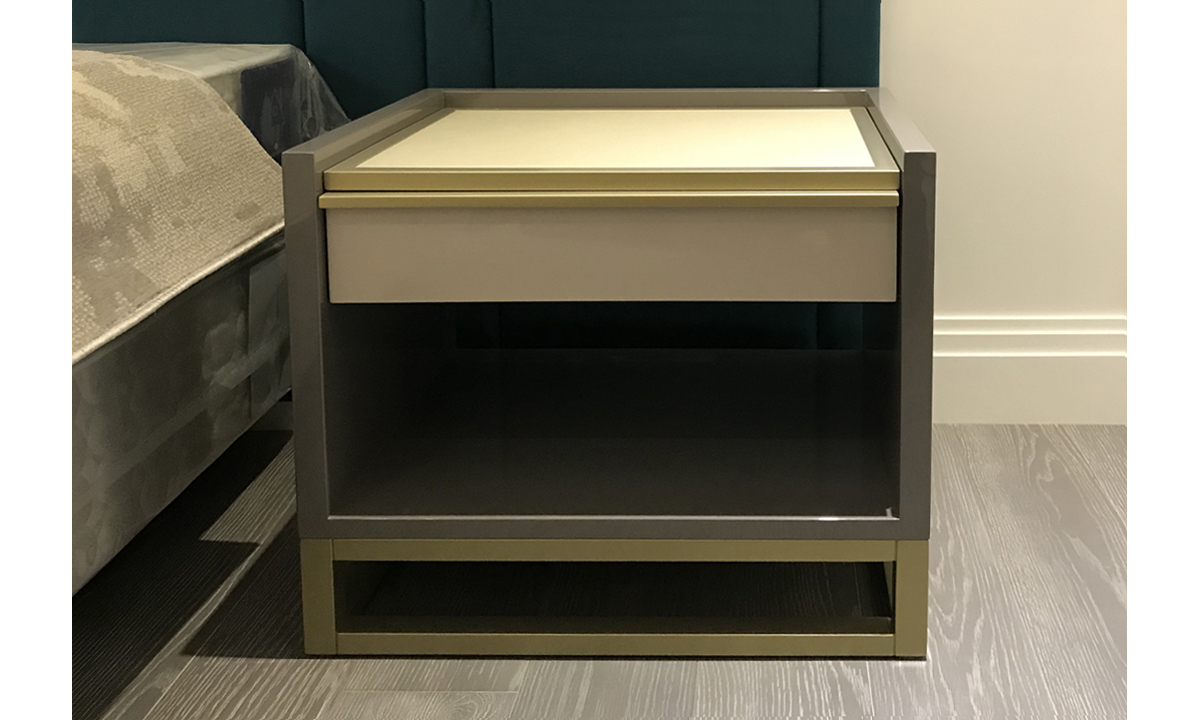 材質:櫃體咖啡色系鋼琴烤漆、實木腳座香檳金金屬漆