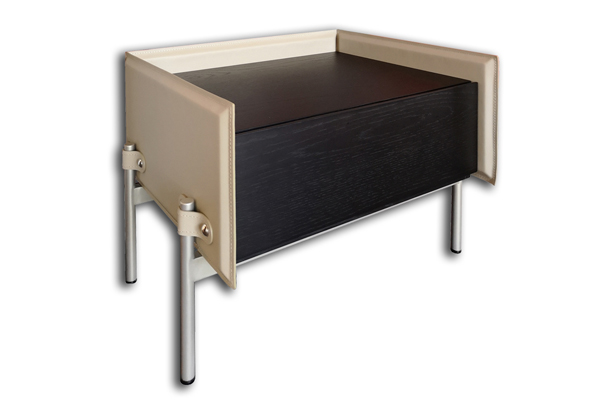 材質:橡木染黑、外框超纖皮、金屬腳噴香檳金色