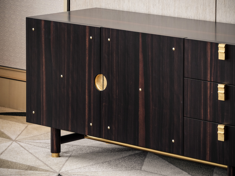 材質:黑檀木染色、金箔、金屬噴黃銅色