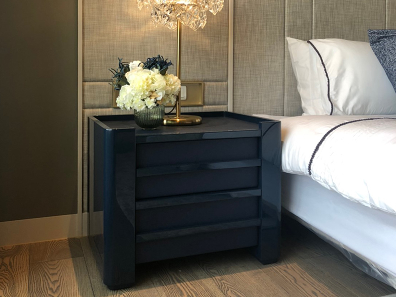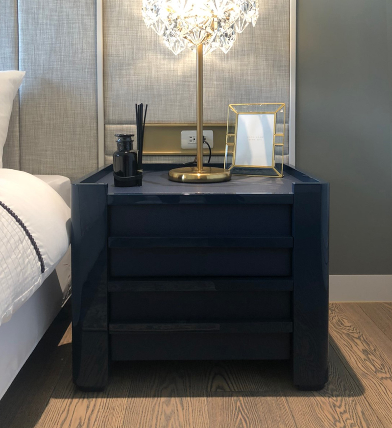 材質: 鋼琴烤漆、櫃面及抽頭人造皮包覆