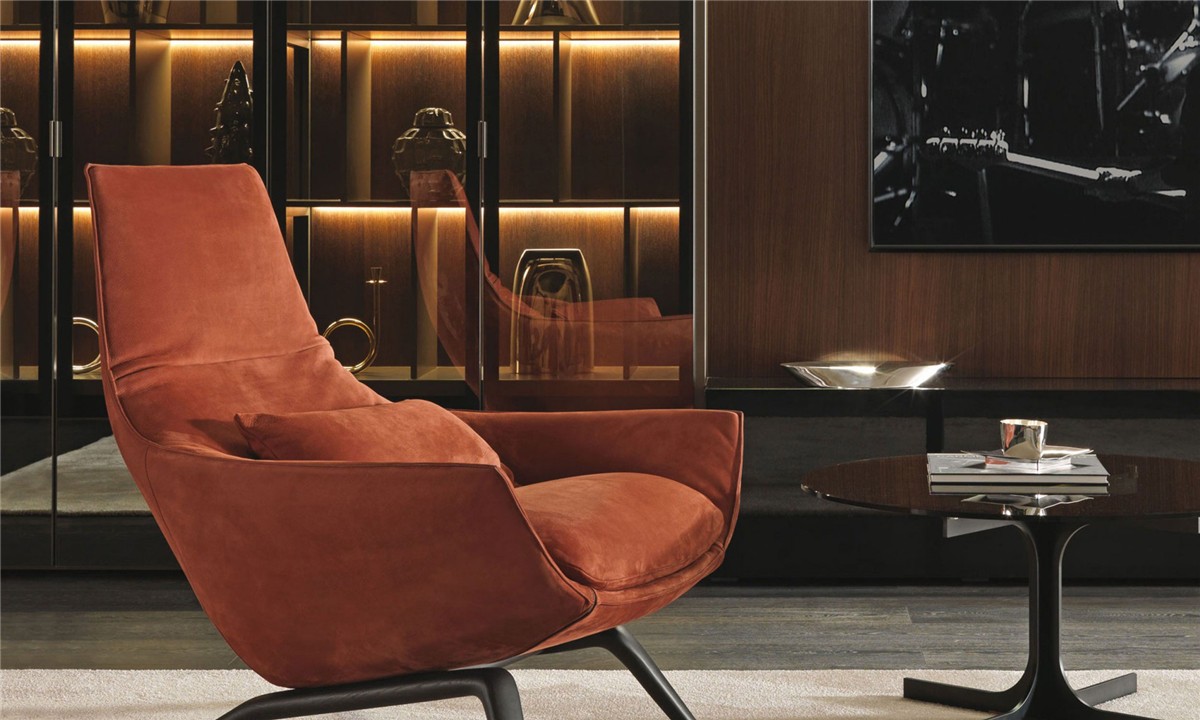 A reinterpretation of the wraparound design of the Ermes chair with the use of special color and material choices. The usual craftsmanship for every little detail highlights the unusual combinations, emphasizing the aesthetic qualities of the product. Full shapes create an intimate dimension, an invitation to relax.