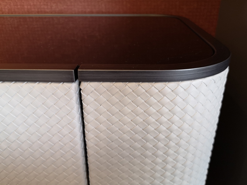 門片以素色面料編織交錯產生的立體感,
