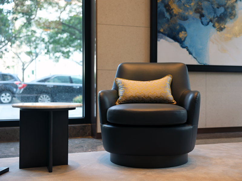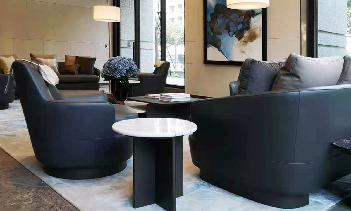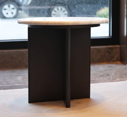 材質:桌腳木染黑銅色、石材桌面選購