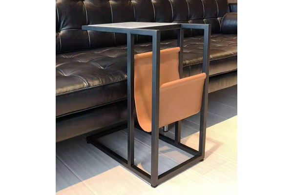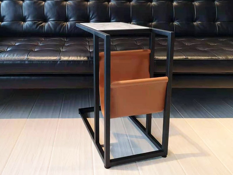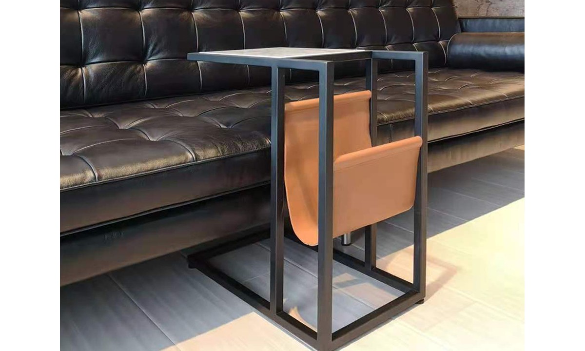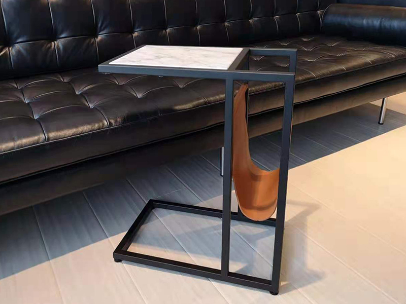 材質:卡拉拉白大理石、橘色馬鞍皮、黑鐵噴黑砂色