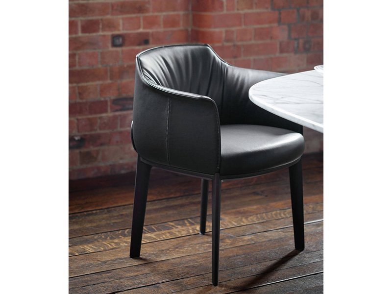 以穩重的實木椅腳搭配符合人體工學的三層泡棉,表面材質可選擇布料或皮革,顏色應有盡有,可滿足家中所有空間搭配。
